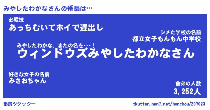 ヘコむあだ名 | 『みやにー』『なまこ酢』『みやっぺ』 |