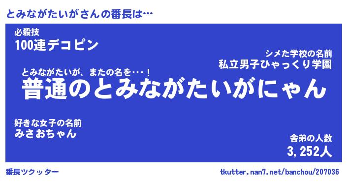 恥ずかしいあだ名 | 『プリティーとみながたいが』『とみちん』 |