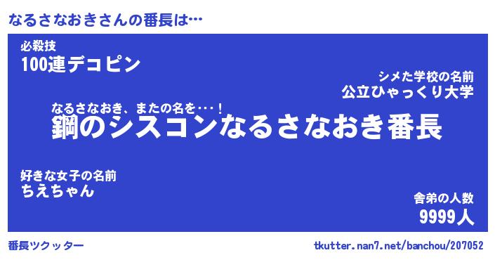 ヘコむあだ名 | 『なるもー』『つくし』『なるお』 |