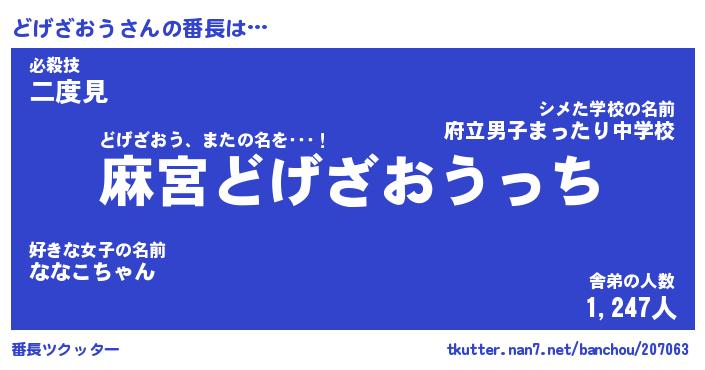 | ヒーロー風カッコイイあだ名 | 『スーパードゲザオウ』『銀牙騎士ドゲ』 |