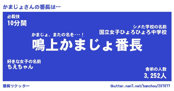 | ヒーロー風カッコイイあだ名 | 『スーパーカマジョ』『幻影騎士カマ』 |