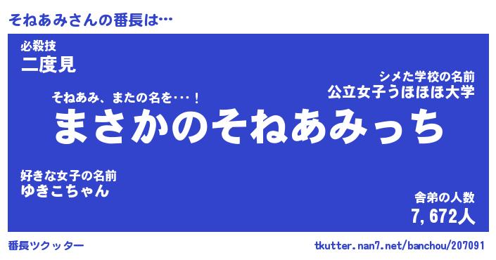 | 男性向けラノベタイトル風あだ名 | 『そねあみの憂鬱』 |