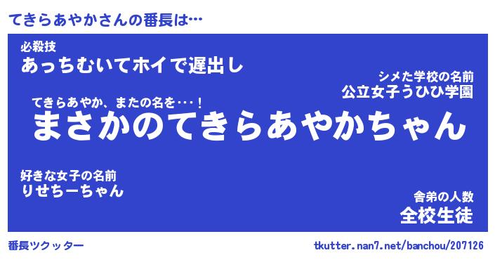 | 伝説のあだ名 | 『伝説のスナイパーてきらあやか』 |