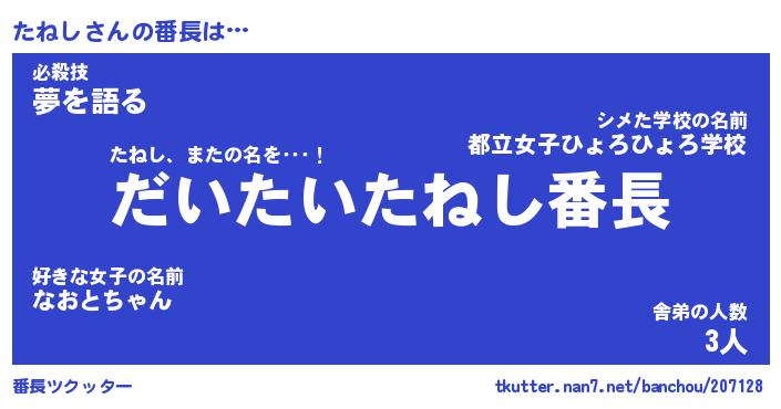 肩書あだ名 | 『たねし店長』『たねし総理大臣』 |