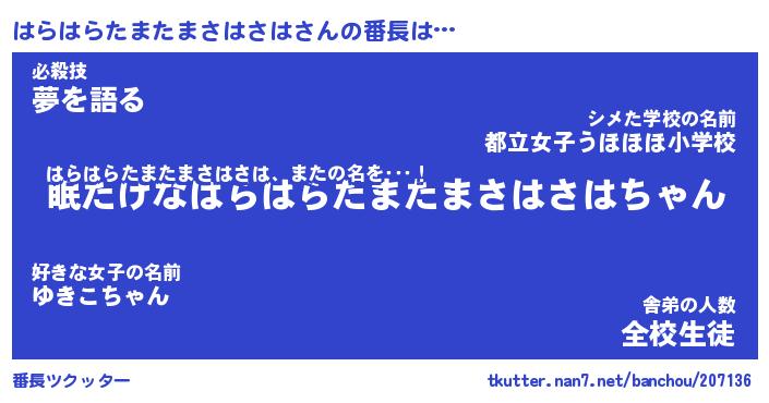 ヘコむあだ名 | 『はらっふぃ~』『つくし』『はらを』 |