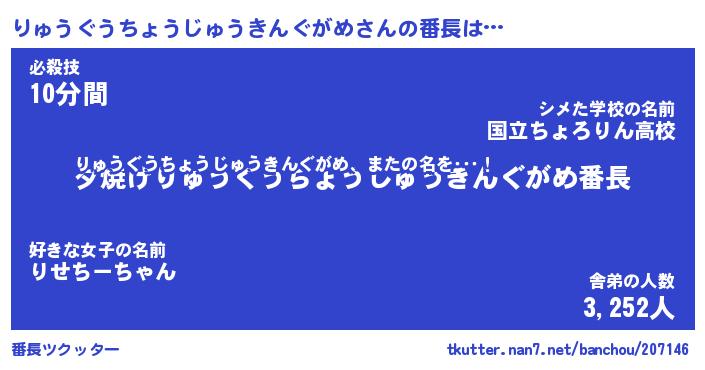 肩書あだ名 | 『りゅうぐうちょうじゅうきんぐがめ店長』 |