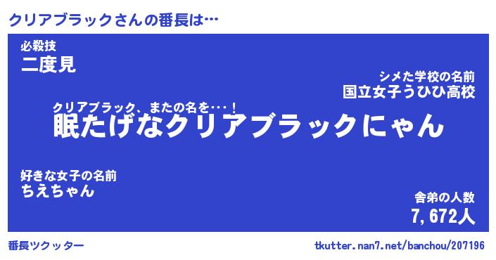 恥ずかしいあだ名 | 『プリティークリアブラック』『クリちん』 |