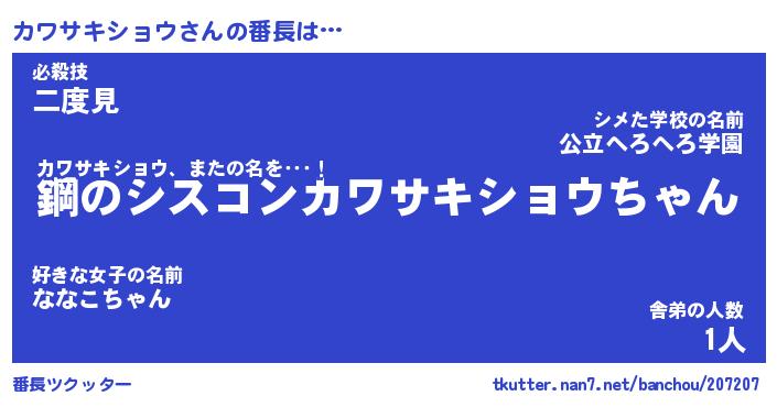 | 肩書あだ名 | 『カワサキショウ社長』 |