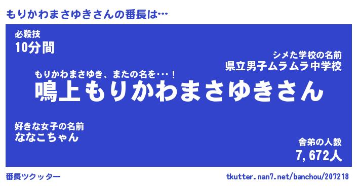 | 伝説のあだ名 | 『封印されしスナイパーもりかわまさゆき』 |