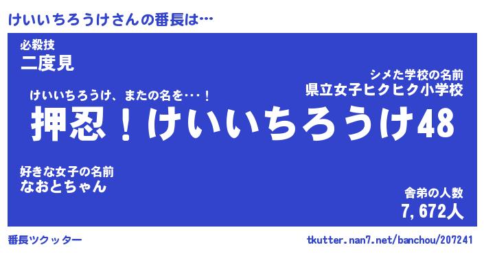 ヘコむあだ名 | 『けいもー』『なまこ酢』『けいっ子』 |
