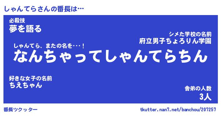伝説のあだ名 | 『伝説のスナイパーしゃんてら』 |