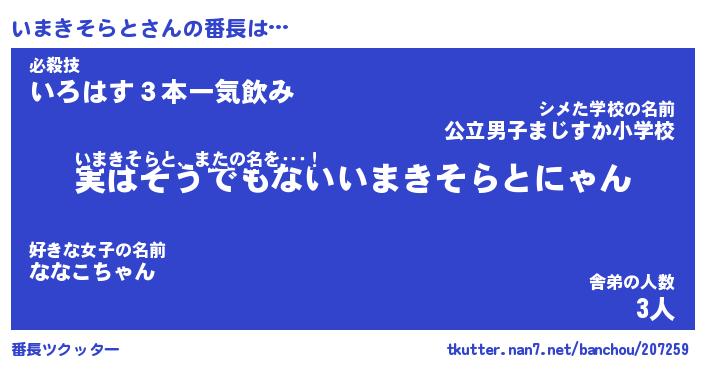 肩書あだ名 | 『いまきそらと社長』『いまきそらと団長』 |