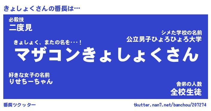 ピコ太郎風あだ名 | 『キコ一郎』『ピキ十郎』『キョ三郎』 |