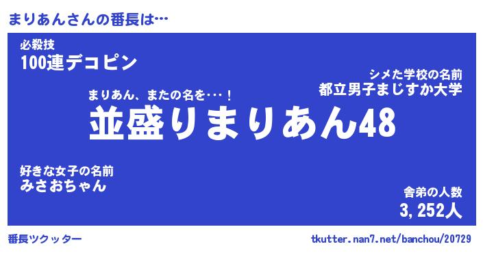 | ピコ太郎風あだ名 | 『マコ四郎』『ピマ十郎』『マリ次郎』 |