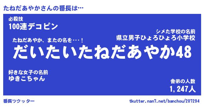 恥ずかしいあだ名 | 『プリティーたねだあやか』『たねっちょ』 |