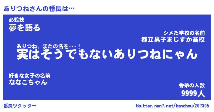 ポケモン風あだ名 | 『アリチュウ』『アリツダネ』 |