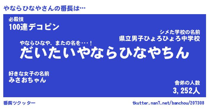 ピコ太郎風あだ名 | 『ヤコ八郎』『ピヤ太郎』『ヤナ次郎』 |
