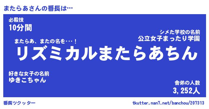 意味不明あだ名 | 『ペロリンまたらあ』『永久保存またらあ』 |