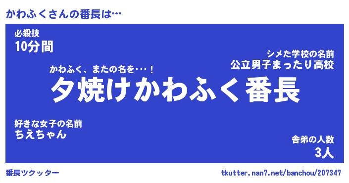 | 伝説のあだ名 | 『封印されしスナイパーかわふく』 |