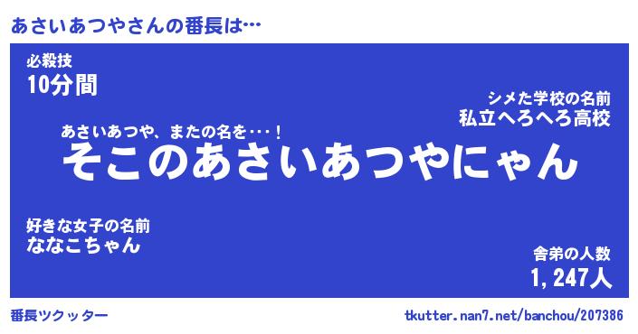 ヒーロー風カッコイイあだ名 | 『スーパーアサイアツヤ』『銀牙騎士アサ』 |