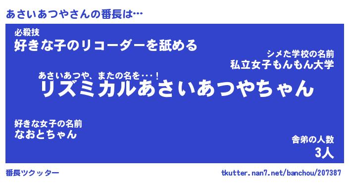 ヘコむあだ名 | 『あさにー』『酢こんぶ』『あさを』 |