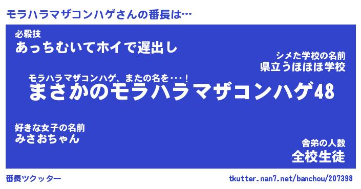 | 欧米人風あだ名 | 『マイケルモラハラマザコンハゲ』 |