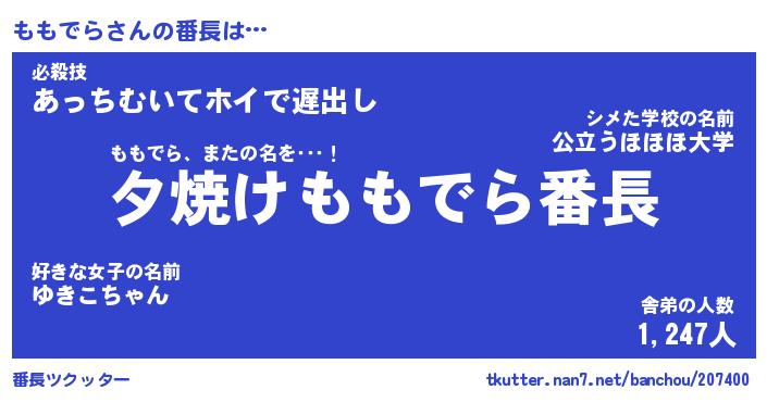 | 意味不明あだ名 | 『ペロリンももでら』『永久保存ももでら』 |