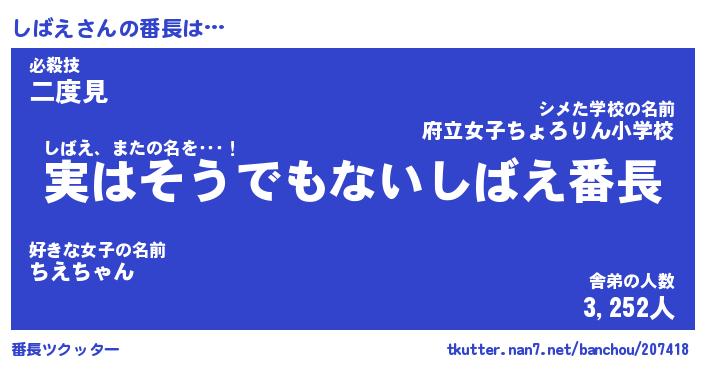 | ヒーロー風カッコイイあだ名 | 『スーパーシバエ』『ウルトラしばえマン』 |