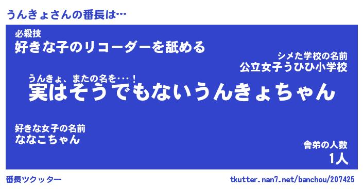 | ヒーロー風カッコイイあだ名 | 『スーパーウンキョ』『黄金騎士ウン』 |