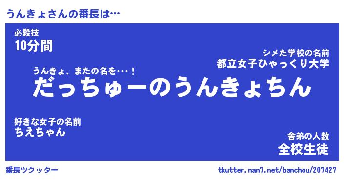 | ピコ太郎風あだ名 | 『ウコ太郎』『ピウ史郎』『ウン三郎』 |