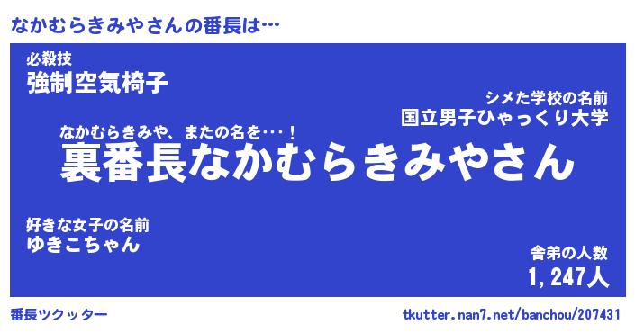 | 恥ずかしいあだ名 | 『プリティーなかむらきみや』『なかちん』 |