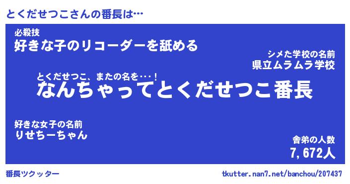 | ヒーロー風カッコイイあだ名 | 『スーパートクダセツコ』『炎刃騎士トク』 |