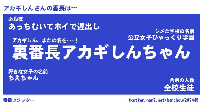| 肩書あだ名 | 『アカギしん御曹司』『アカギしん大統領』 |