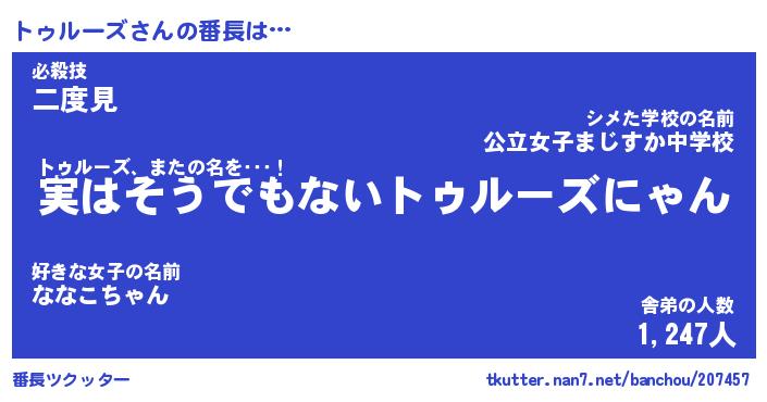 | ポケモン風あだ名 | 『トゥチュウ』『トゥルダネ』 |