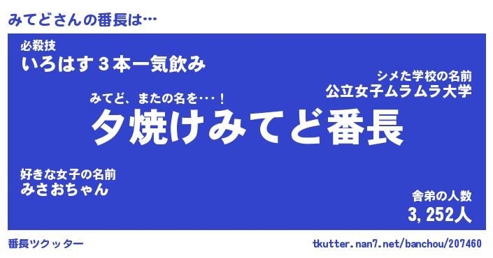 | 意味不明あだ名 | 『ペロリンみてど』『みてどフォーエバー』 |