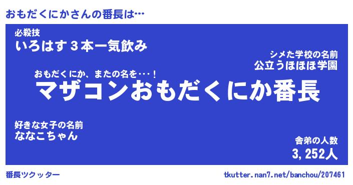 | ヘコむあだ名 | 『おもにー』『なまこ酢』『おもっ子』 |