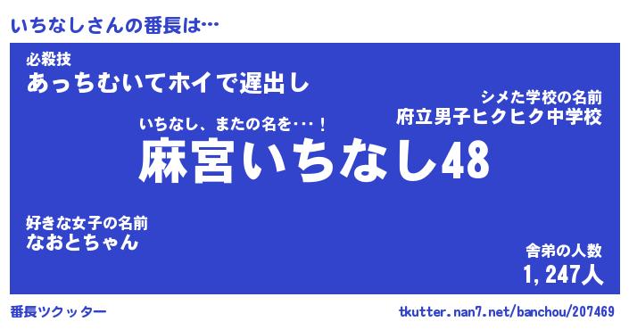 | 恥ずかしいあだ名 | 『プリティーいちなし』『いちっちょ』 |