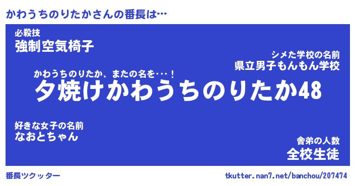 | ヘコむあだ名 | 『かわにゅー』『つくし』『かわを』 |