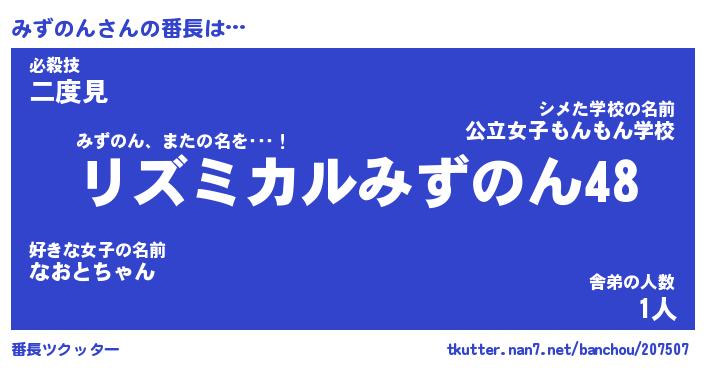 | 意味不明あだ名 | 『ペロリンみずのん』『永久保存みずのん』 |