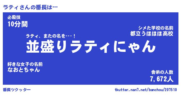 | 意味不明あだ名 | 『ペロリンラティ』『ラティフォーエバー』 |