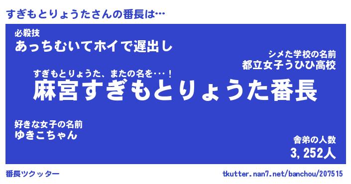 | 2回繰り返すあだ名 | 『すぎすぎ』『すすぎぎ』『ぬぷぬぷ』 |