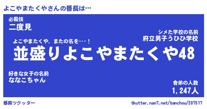 | ピコ太郎風あだ名 | 『ヨコ三郎』『ピヨ一郎』『ヨコ四郎』 |