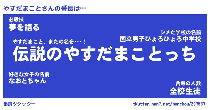 | 伝説のあだ名 | 『伝説のスナイパーやすだまこと』 |