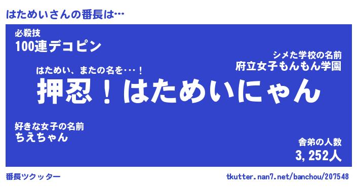 | 意味不明あだ名 | 『ペロリンはためい』『永久保存はためい』 |