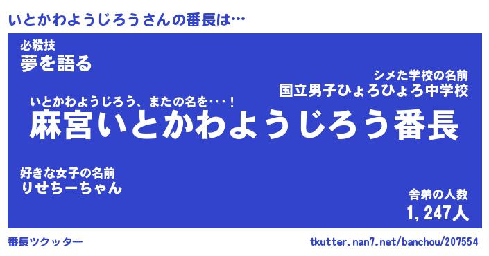 | ピコ太郎風あだ名 | 『イコ十郎』『ピイ十郎』『イト八郎』 |