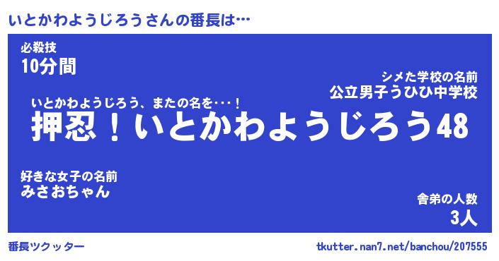 | 伝説のあだ名 | 『封印されしスナイパーいとかわようじろう』 |