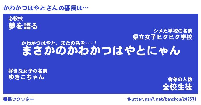 | 胡散臭い通販商品みたいなあだ名 | 『必ず成功する水晶球…その名も「かわかつはやと」』 |