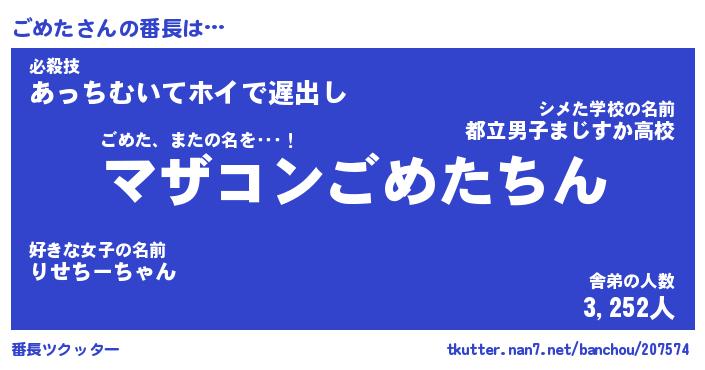 | 意味不明あだ名 | 『ペロリンごめた』『ごめたフォーエバー』 |