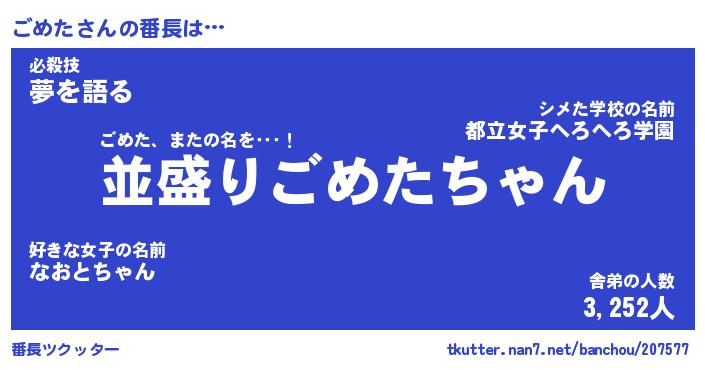 | 意味不明あだ名 | 『ペロリンごめた』『ごめたフォーエバー』 |