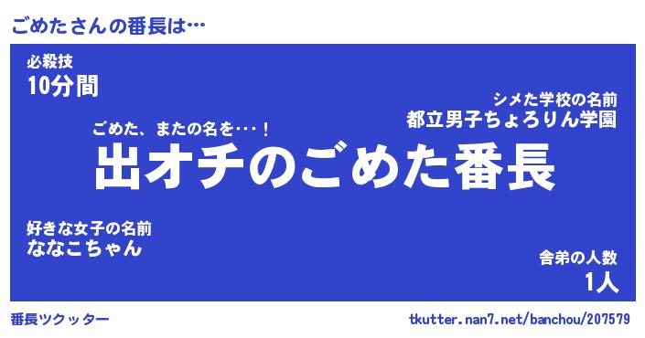 | 意味不明あだ名 | 『ペロリンごめた』『ごめたフォーエバー』 |